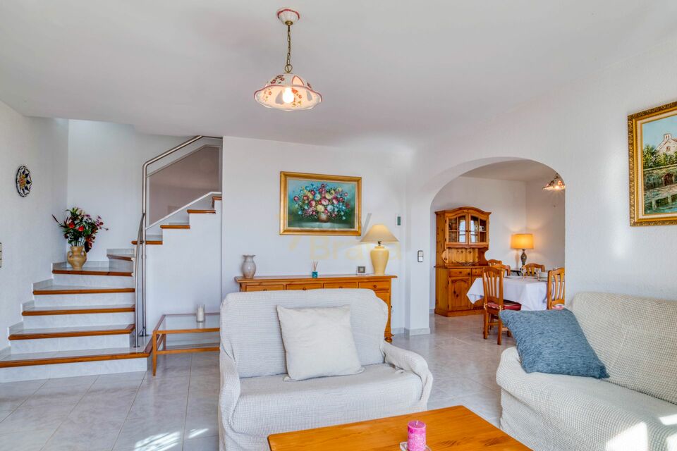 A la planta baixa, hi ha una habitació doble amb armari encastat, un lavabo amb dutxa i una sala d'estar-menjador amb cuina oberta que s'obre a la terrassa i una petita habitació amb ús de safreig o/i rebost. A la planta superior, hi ha dos dormitoris dobles amb armaris encastats, terrasses amb vistes espectaculars i un bany complet amb banyera.