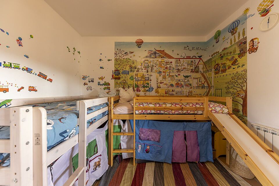 A la primera planta la casa compta amb tres habitacions (una individual i dues dobles), una galería polivalent, un safareig i un bany amb banyera.