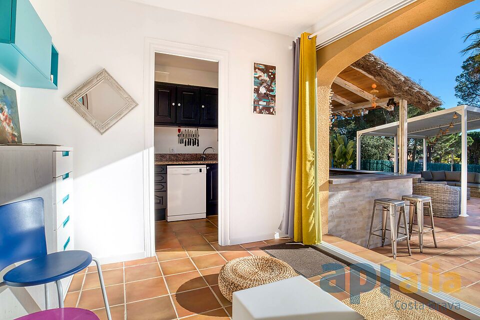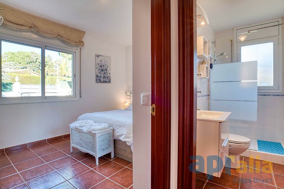 La maison est située dans une zone très verte, avec un accès facile à la fois à la ville de Calonge et à l'autoroute.